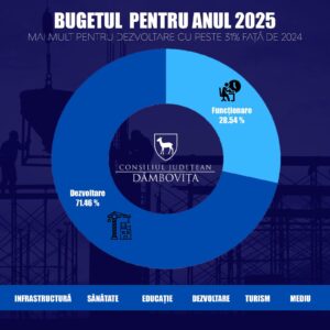 Astăzi, în ședința ordinară a Consiliului Județean Dâmbovița, a fost aprobat bugetul județului Dâmbovița pe anul 2025 care este orientat pe DEZVOLTARE și INVESTIȚII. Concret, 71,46% va merge pentru dezvoltare în acest an, cu 31,42% mai mult decât anul trecut, iar 28,54% pentru funcționare.