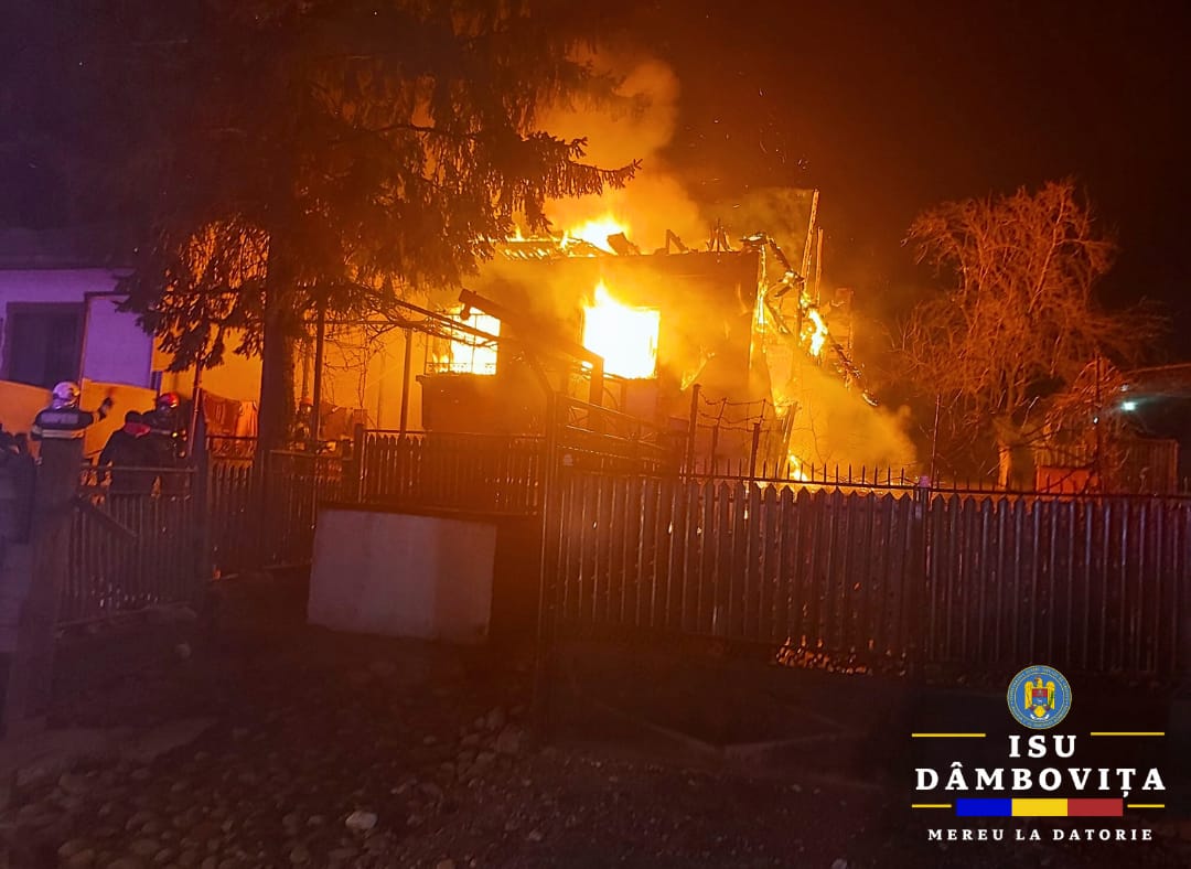 Detașamentul de Pompieri Târgoviște a intervenit cu patru autospeciale de stingere cu apă și spumă și un echipaj SMURD.
