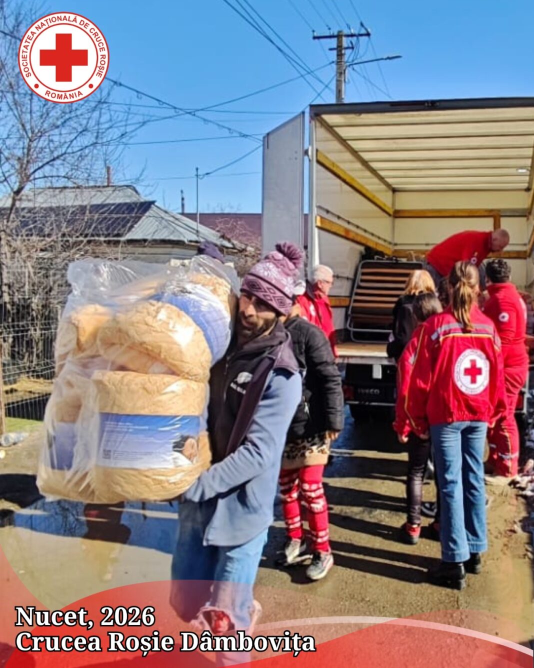 Filiala de Cruce Roșie Dâmbovița a răspuns prompt și solidar solicitării de ajutor venite din partea comunității din localitatea Nucet, unde trei familii au fost grav afectate în urma unui incendiu care le-a distrus locuințele.