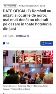 Datele oficiale arată o realitate îngrijorătoare: în primele 6 luni din 2025, românii au jucat la jocuri de noroc 5,5 miliarde lei, adică mai mult decât au cheltuit pe cazarea la toate hotelurile din țară.