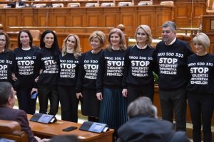 Parlamentarii PSD au lansat astăzi, la Palatul Parlamentului, campania ,,Stop violenței împotriva femeilor’’ care se vrea a fi o campanile de popularizare la nivel național a numărului de telefon de urgență prin care orice persoană care se simte abuzată poate să sune. Deputații și senatorii social democrați au purtat un tricou pe care scria ,,Stop violenței împotriva femeilor’’ și numărul de de telefon de urgență ??????????.
