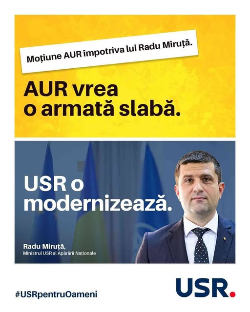 AUR atacă omul care modernizează armata. Un sabotaj politic care NU va reuși’’, a transmis deputatul USR Dâmbovița, Daniel Blaga.