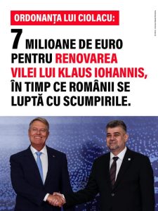 Deputatul USR Dâmbovița, Daniel Blaga semnalează că în timp ce românii se luptă cu scumpirile, Guvernul direcționează bani pentru renovarea vilei lui Klaus Iohannis. Și nu este vorba de o sumă mică, ci de una imensă.