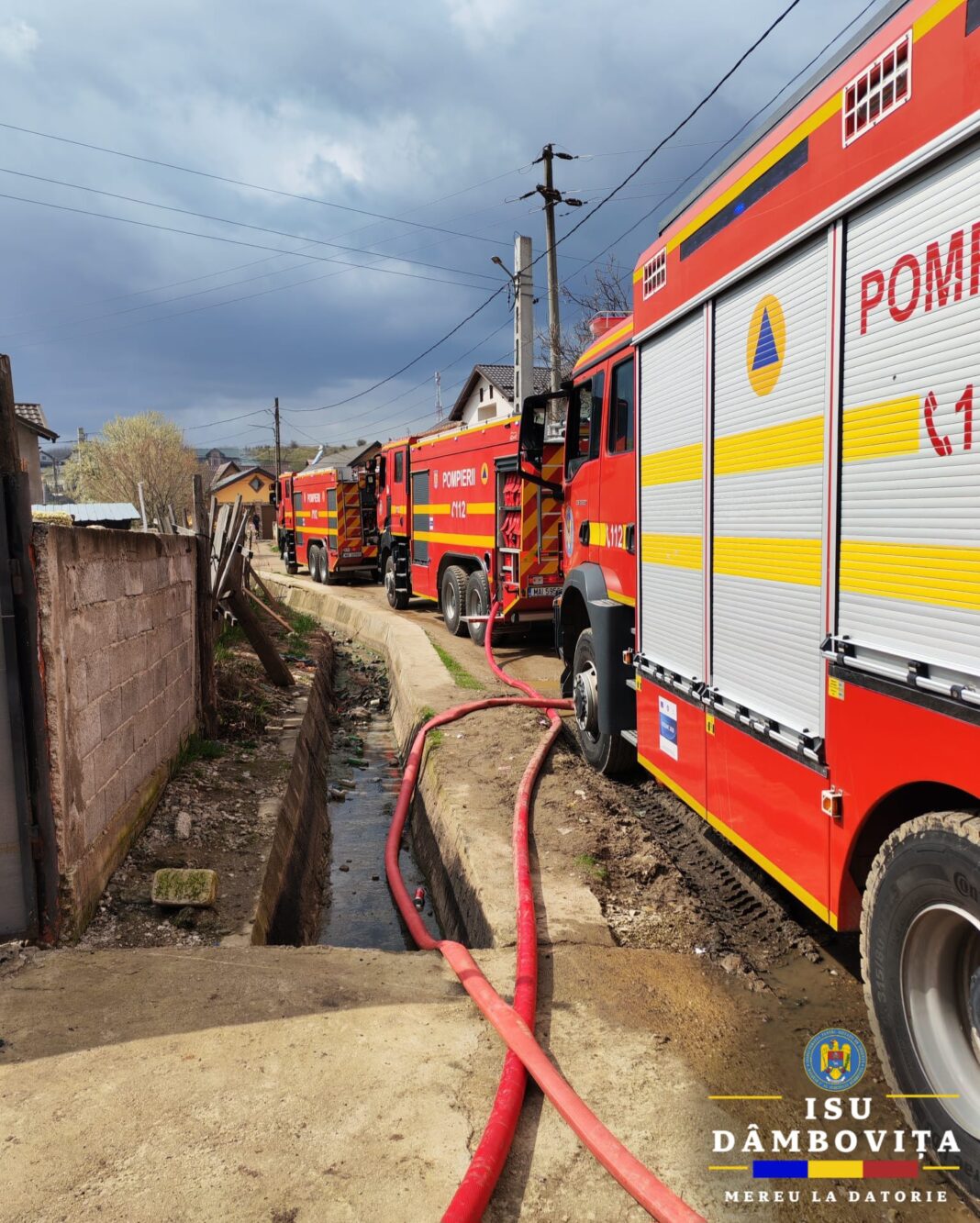 La fața locului, în comuna Vișina, pe strada Avram Iancu, intervin pompierii de la Garda de Intervenție Vișina cu două autospeciale de stingere cu apă și spumă, precum și echipaje din cadrul Detașamentului de Pompieri Găești, cu o autospecială de stingere cu apă și spumă și un echipaj SMURD. La sosirea forțelor de intervenție, incendiul se manifestă generalizat la o casă, pe o suprafață de aproximativ 150 de metri pătrați, și la acoperișul unei alte case, pe o suprafață de aproximativ 200 de metri pătrați. Incendiul este localizat. Totodată, o persoană de sex feminin este transportată la spital pentru îngrijiri suplimentare
