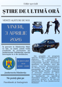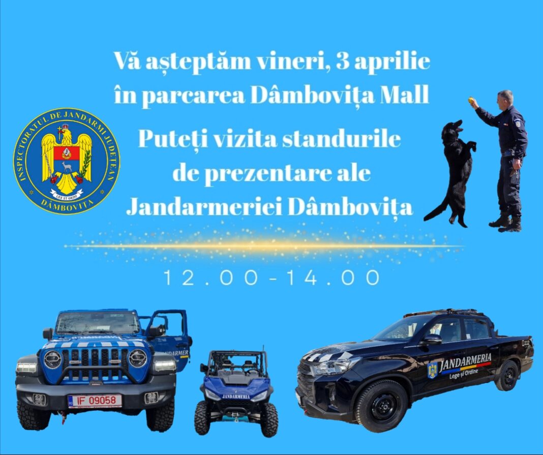 Așadar, vă așteptăm vineri, 3 aprilie 2026, în intervalul orar 12:00-14:00, în parcarea de la Dâmbovița Mall, pentru a sărbători împreună Ziua Jandarmeriei Române!’’, a transmis Inspectoratul de Jandarmi Judeţean „Mircea cel Bătrân” Dâmbovița.