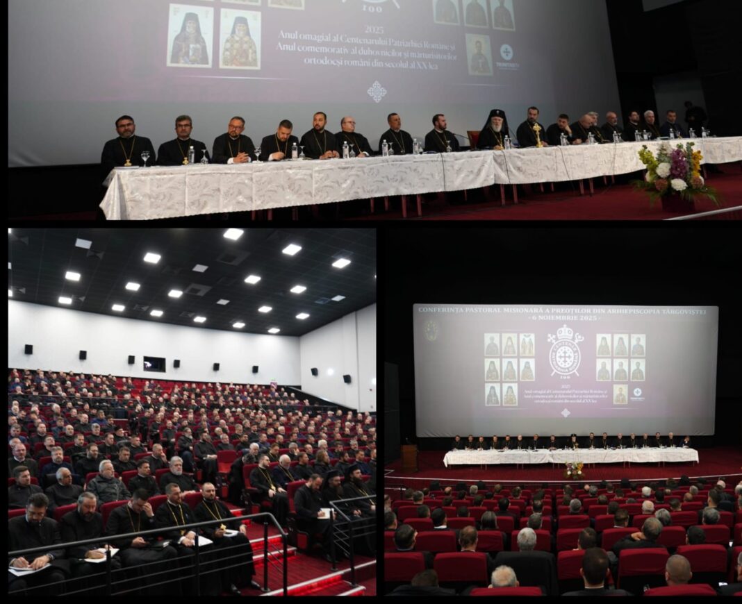 În Sala „Independența” din Târgoviște, s-a desfășurat joi, 6 noiembrie 2025, sub președinția Înaltpreasfințitului Părinte Mitropolit Nifon, Arhiepiscopul Târgoviștei, Conferința Pastoral-Misionară semestrială a clericilor din a doua parte a anului, cu tema ”Anul comemorativ al duhovnicilor și mărturisitorilor ortodocși români din secolul al XX-lea”. Au luat parte, alături de preoții din cele cinci protoierii ale Arhiepiscopiei Târgoviștei, Părintele Vicar eparhial, Părintele Secretar eparhial, Părinții Consilieri și Inspectori de la Centrul eparhial, Părinții protopopi, precum și stareții și starețele de la mânăstirile din Eparhie.