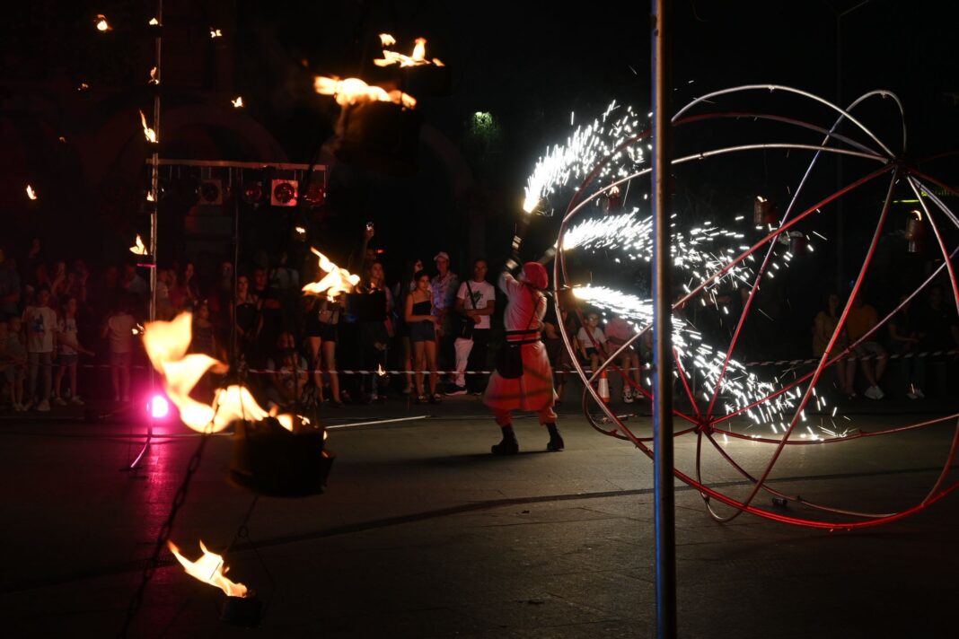 Seara a culminat, în Piața „Mihai Viteazul”, cu o explozie de sunet, foc și mișcare prin spectacolul „Gloria”, semnat de Yaroslav Fedoryshyn și prezentat de Teatrul Voskresinnia din Lviv, Ucraina. Fără replici, dar cu o forță scenică impresionantă, spectacolul a fost un ritual vizual despre ciclicitatea vieții, în care trupurile, sunetele și flăcările au spus o poveste ancestrală despre suferință și renaștere.